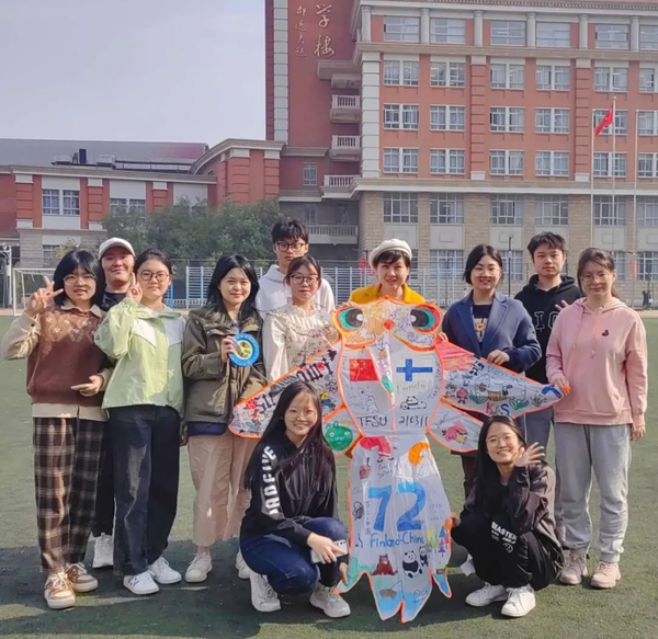 为庆祝中芬两国建交72周年,近日,欧洲语言文化学院芬兰语专业教师王烁在“芬兰文化”课程上带领学生们自制1.8米的中芬友谊金鱼风筝。学生体验中国风筝的制作工艺,包括设计、绘画、安装、试飞等一整套流程,风筝上画满了学生们创作的中芬文化元素。姆明、愤怒的小鸟、铃兰花、圣诞老人、重金属乐队;大熊猫、金鱼、福娃、青花瓷……代表芬兰和中国两国文化的种种经典形象跃然纸上,风筝上的独特设计反映出同学们眼中的芬兰与中国,引发出更多中芬两国人民的共鸣和美好回忆。芬兰驻华使领馆微博对此次活动进行了报道。