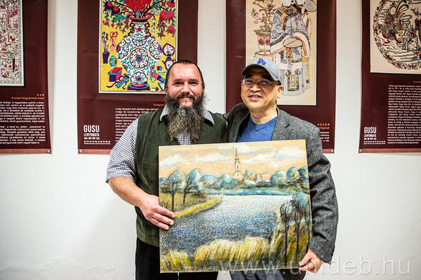 下半场讲座里,德布勒森大学人种学系助理教授比哈利纳吉﹒伊娃博士以“匈牙利茶叶消费的前世今生”为题,介绍了匈牙利的茶叶消费文化、茶文化的物质记忆和一些关于茶的微观研究。乔马恩德诺德市博物馆馆长松达﹒伊斯特万博士从家庭使用方法、民间医学特点、药草的采取三个方面介绍了包括茶叶在内的药草知识。乔马恩德诺德市全科医生马洽丽﹒玉蒂特博士介绍了马鞭草、藏红花、百金花、八角等药草及其效用以及与合理饮茶的关系。德布勒森大学人文学院在读博士生朱小涵女士介绍了中国国剧------京剧的相关知识和听戏品茶的曼妙意境。 市博物馆馆长向德大孔院赠送礼物