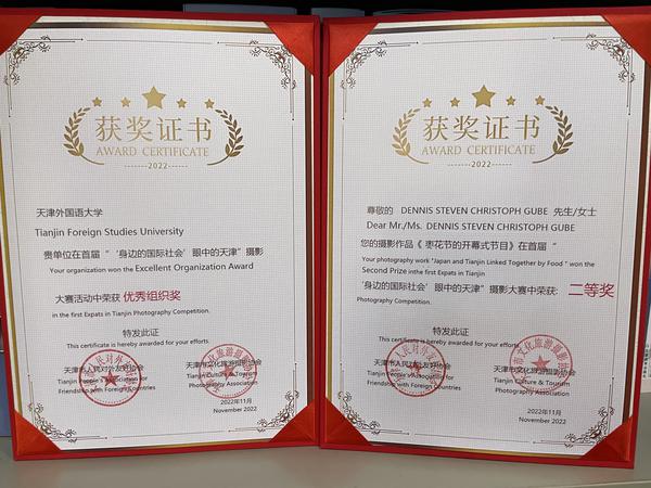 在市对外友协举办的“‘身边的国际社会’眼中的天津”首届摄影大赛中,乐鱼·体育获得优秀组织奖,德国籍教师克里斯·古博的摄影作品《枣花节的开幕式节目》获得二等奖,并作为获奖者代表之一在颁奖仪式上作视频致辞。古博表示,非常高兴能够获奖,感谢活动主办方和学校提供的学习机会。此次参观滨海崔庄古冬枣园第一届枣花节暨天津市乡村传统文体项目展演活动,令人收获颇丰、回味无穷,希望以后有机会参加更多这样的活动。