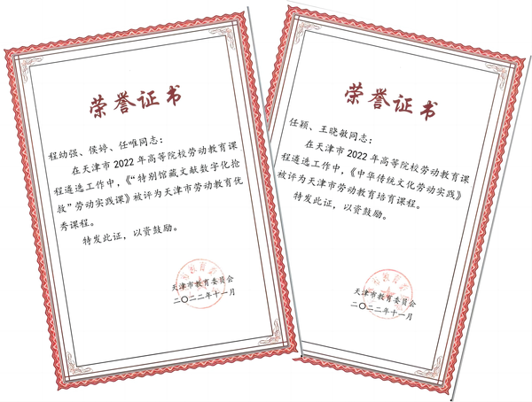 由图书馆馆长程幼强主持,侯婷、任唯参与的“特别馆藏文献数字化抢救”劳动实践课被认定为天津市劳动教育优秀课程。该课程以我校图书馆“特别馆藏文献数字化抢救公益项目”为依托,从特藏古籍保护知识、古籍修复、特藏古籍数字化规范、古籍数据库建设、操作实践等角度全方位、多维度地设计劳动教育内容。课程通过古籍特藏的“电子信息化”,使学生全面了解古籍保护、修复、数字化知识;掌握古籍文献电子文本转化技能;了解业界最新技术发展趋势;帮助青年学子了解劳动的内涵和意义,塑造正确劳动价值观。学生们通过劳动实践让沉睡的古籍“活起来”,成为“故纸堆”里的“新潮人”,坚定做中华优秀传统文化的继承者。