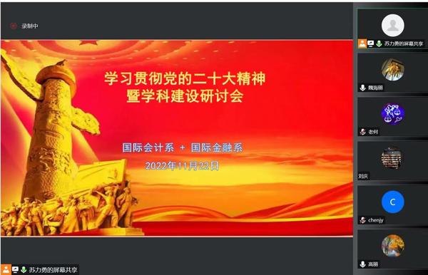 支部师生共进,丰富形式共同学。11月以来,国际商学院党委17个师生党支部先后组织开展了以“学习宣传贯彻落实党的二十大精神,学习新修订《党章》”为主题的党日活动。教师党支部着重学习了教育的新思想、新战略、新要求等内容,学生党支部着重学习了青年工作的新要求等内容,立足支部特点,通过师生共话、理论自测、互动答题、专题教学案例撰写等创新学习宣传形式,深化学习领会效果。