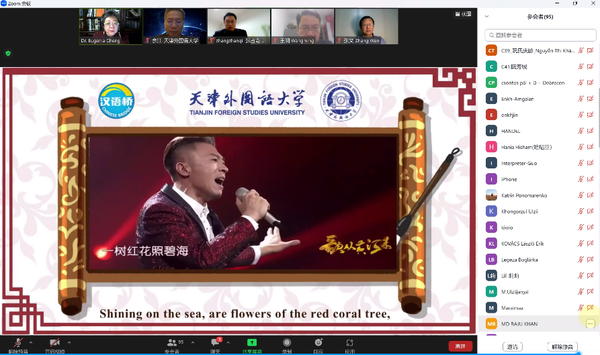 程幼强邀请学员代表宝音(Batsuuri Buyanzaya)和萨义德(Mohammed Saddam Ahmed Saeed)发言,并同参与仪式的学员、嘉宾共同赏析经典中文歌曲《珊瑚颂》。