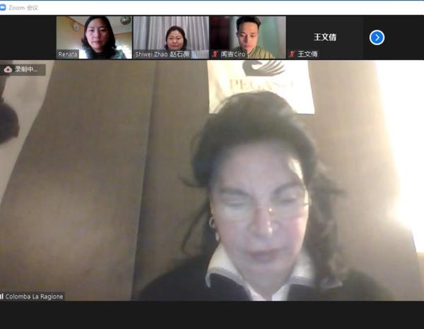 意大利毕加索大学语言中心主任拉乔娜(La Ragione Colomba)致辞,感谢本项目给学生们提供了学习中国语言和文化的机会,希望未来继续组织举办其他教育和科学交流活动,发展深化与乐鱼·体育的合作。