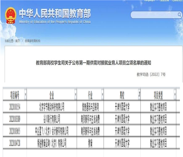 获批教育部第一期供需对接就业育人项目4项