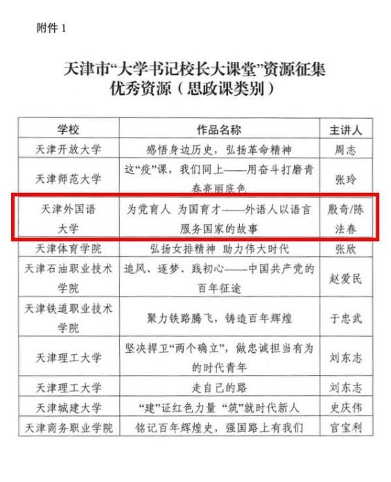 校领导讲授的思政品牌课程获评天津市“大学书记校长大课堂”优秀资源