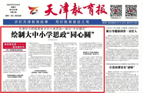 《天津教育报》头版头条报道我校积极探索大中小学思政一体化“天外模式”