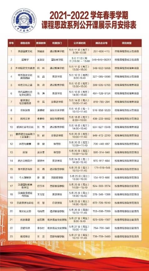 春季学期课程思政系列公开课展示月安排表