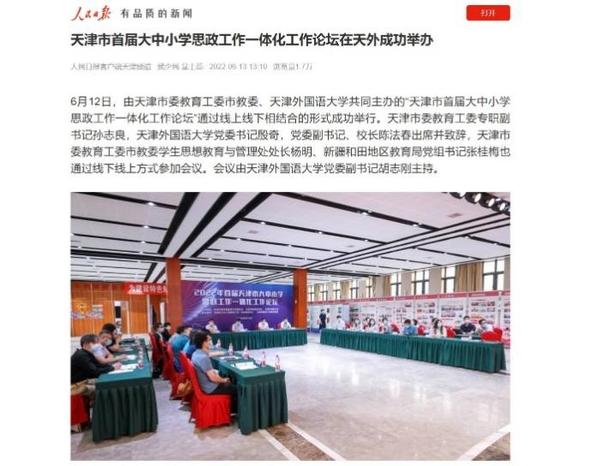 “人民日报”客户端报道我校举办首届天津市大中小学思政工作一体化工作论坛