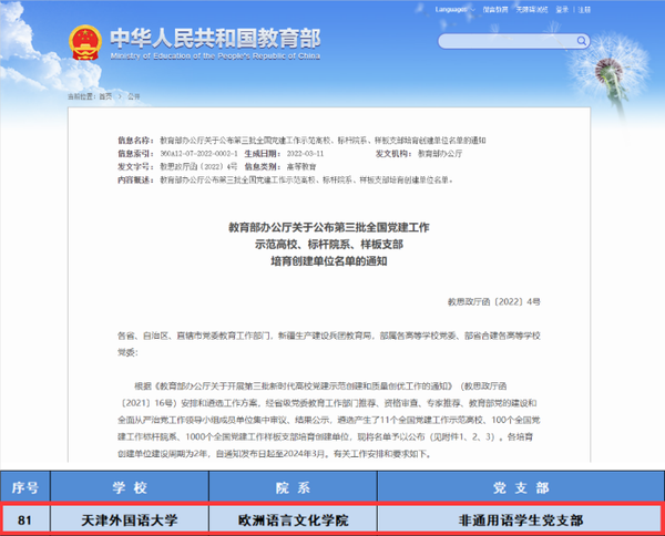 欧洲语言文化学院非通用语学生党支部获评第三批“全国党建工作样板支部”培育创建单位
