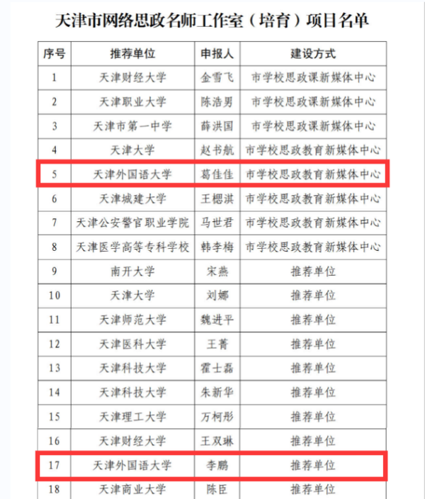 李鹏、葛佳佳工作室获批“天津市网络思政名师工作室”立项