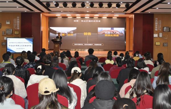 郭平华向在场毕业生详细介绍了华为公司的愿景使命、发展战略、人才观,以及与华为共同成长的故事,勉励大家胸怀凌云之志,走好践行之路,并邀请毕业生与华为共同携手前行。在场学生就职业发展路径、面试选拔等问题积极提问,并现场递交简历。