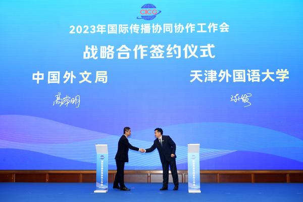 会上,中国外文局及所属单位分别与我校,以及经济日报社、中共湖南省委宣传部、教育部中外语言交流合作中心、新华社媒体融合生产技术与系统国家重点实验室、中国国家博物馆、中国人民大学、湖南师范大学、中共山东省委宣传部、中国文学艺术联合会、读者出版集团等单位签署战略合作协议。