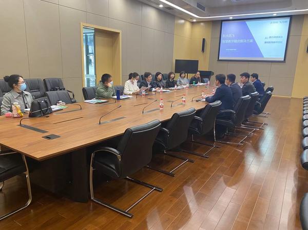 参观结束后,双方在科大讯飞会议室就“AI+教育”进行了深入交流。老师们详细了解了科大讯飞的成立与发展沿革、AI+教育、AI+产教融合、AI+听见、AI+智能服务、人机交互、图文识别等产品研发现状等情况。科大讯飞负责人详细介绍了FIF口语训练系统,并针对在线考试监控、智能阅卷系统以及大学英语口语教学模式创新等方面提出了一系列基于科大讯飞人工智能技术建设的建议和方案。