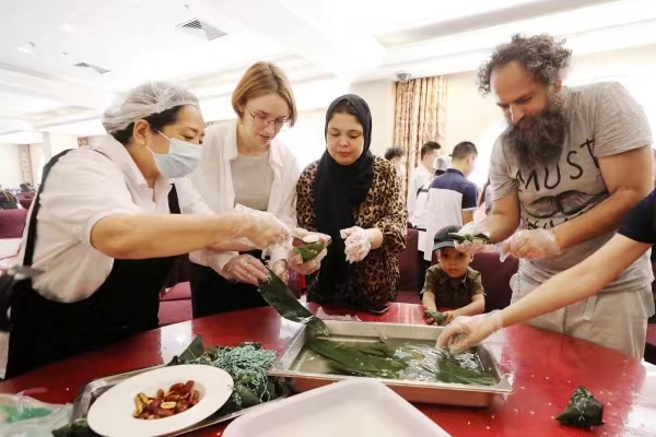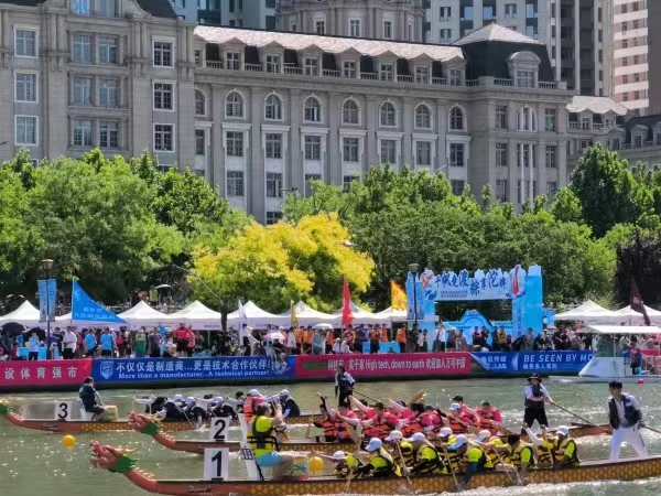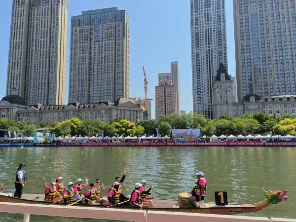 Nearly 100 foreignersfrom companies, universities and international schools in the coastal city ofTianjin joined the city's 2023 Dragon Boat Race, which was held on Thursdayduring Dragon Boat Festival.