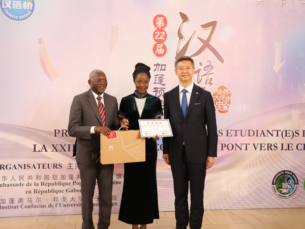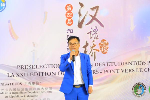 日前,由中国驻加蓬大使馆主办、邦戈大学孔子学院承办的第22届“汉语桥”世界大学生中文比赛加蓬赛区决赛在邦戈大学成功举办。中国驻加蓬大使李津津、邦戈大学校长苏玛霍出席,加蓬总统府、外交部、高教部,加中友好协会、加蓬留华学生联谊会、绿丝带国际学校、先进技术学院代表以及加蓬华侨华人协会、中国援加医疗队、中资机构、邦戈大学职能部门负责人和孔子学院师生200余人参加活动。比赛评委团由来自中国驻加蓬大使馆、加蓬华侨华人协会、中资机构、加中友好协会、加蓬留华学生联谊会的6名代表组成。中国驻加蓬大使馆随员米宇和孔子学院学生安德烈担任主持人。