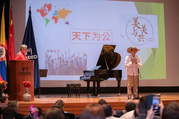 张立平介绍了“天下一家”蕴含的中国文化理念和中国的发展机遇,指出汉语和西语是世界上使用人口最多的语言之一,承载着不同而深厚的文明内涵。世界各国人民各个民族讲着不同的语言,展现了文明的多样性和活力,这是世界的基本特征,也是人类进步的源泉。不同的文明都闪烁着璀璨光芒,跨越时空、超越国界,共同为人类社会现代化进程作出了重要贡献。我们倡导尊重世界文明多样性,坚持文明平等、互鉴、对话、包容,以文明交流超越文明隔阂,文明互鉴超越文明冲突,文明包容超越文明优越。张立平表示,语言是文化的载体、友谊的使者、思想的表达。汉语则是打开中华文化宝库、推开中国机遇之门、开启文明交流之路的金钥匙。希望更多的哥伦比亚年轻人学习汉语,深化对中国的认识,抓住中国的机遇,书写绚丽的青春乐章,共同促进文明对话与交流,用人文理性的光芒照亮人类文明的星空。