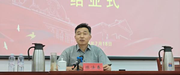 陈法春在结业式上进行总结讲话。他指出,我校教育集团正处于高质量内涵式发展的关键时期,也是实现精细化管理的起步阶段,集团各学校处于不同的发展时期,也面临着不同的发展机遇与挑战,新的形势下管理干部要大力倡导学习,要全面提升自身的综合素养和履职能力。他希望全体管理干部要成为具有先进教育思想、前瞻性教育理念、出色治校办事能力的教育家型的领导干部,在未来学校发展中树立一盘棋的意识,将各个学校的发展融入集团的发展,做到既为一隅增光,更为全局添彩。