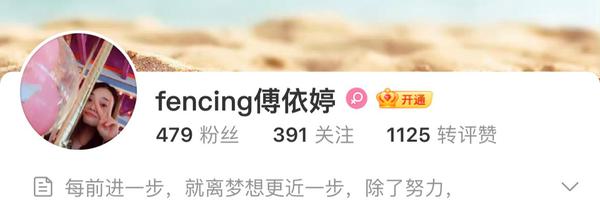 傅依婷与邵雅琦一样,都曾在第十四届全国运动会中获得过单项冠军。她在微博账号@fencing傅依婷的个性签名写道:“每前进一步,就离梦想更近一步,除了努力,没有任何借口。”