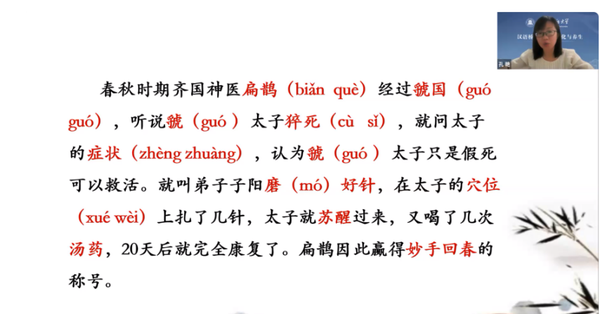 开幕式后,学员们开始了第一堂汉语直播课的学习。项目按照学员的汉语水平分为零基础班、初级班和中高级班。学员们很快进入学习状态,课堂气氛活跃。中高级班第一课的内容是中医中的成语,授课教师孔艳讲了“妙手回春”的含义和故事,同学们听得兴致盎然,课程结束后,在班级微信群讨论“吃”药与“喝”药的区别。初级班的授课教师李纯茵在直播课结束后,继续留在课堂为学员们一一纠正发音。