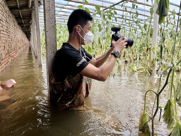 大棚里,周围是涝死的瓜秧,稀疏的果实在藤蔓上蜷缩着。水位接近胸口,苗超仍高举相机走向田地,拍摄照片和视频素材,报道最真实的情况。今年夏天水害频发,来自河北和北京的大水在天津交汇,带来洪水上涨,致使村民们离开家园。在那些极易被忽视的地方,苗超用镜头在一线探寻,带着一双属于普通群众的眼睛去观察世界,发现人们鲜少关注的角落。通过媒体的呈现,使实情得以展示,问题得以解决。