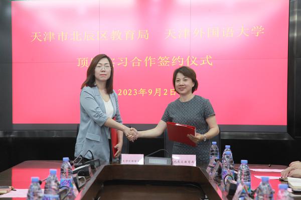 为深入贯彻落实党的二十大精神和习近平总书记关于教育强国重要论述,9月2日,英语学院与北辰区教育局在北辰教育中心共同举行顶岗实习合作签约暨首批实习生到岗仪式。北辰区教育局党委书记、局长郑丽莉,英语学院党委书记刘海燕,英语学院教学副院长李媛霞出席。首批合作的七所中小学主要负责同志、十六名顶岗实习生全程参与。仪式由北辰区教育局党委委员、副局长王景江主持。