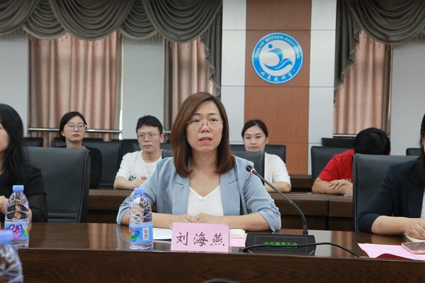 刘海燕对北辰区教育局给予英语学院学科建设和人才培养质量的高度信任致以衷心感谢。她表示,此次北辰区教育局与英语学院合作共建,探索以创新教育人才培养模式贯通基础教育和高等教育,是贯彻习近平总书记关于教育强国重要讲话精神的有力举措,是落实天津市“十项行动”的一次生动实践,充分体现了北辰优质基础教育资源与天外英语专业特色优势、不同阶段学生成长诉求与教育工作者使命担当、区校携手解难题办实事和务实创新发展等三个维度的高度契合。英语学院将结合北辰区的需求和反馈,有针对性地开展理论引领、专业教学,提高学生培养质量,与北辰区教育局共同拓展高校学科建设、教师队伍培训、大中小思政一体化等更有深度、更多层次的合作交流,以实际行动推动高等教育高质量发展和北辰区英语基础教育特色发展。希望首批实习生们用心融入、勤学善思,时刻牢记为人师表的使命担当,慎独、慎微,真正展现出有理想、敢担当、能吃苦、肯奋斗的“天外青年”+“北辰教师”形象。