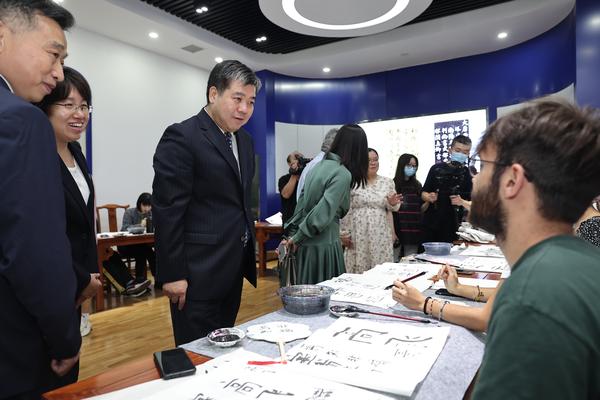与会领导观摩留学生书法课