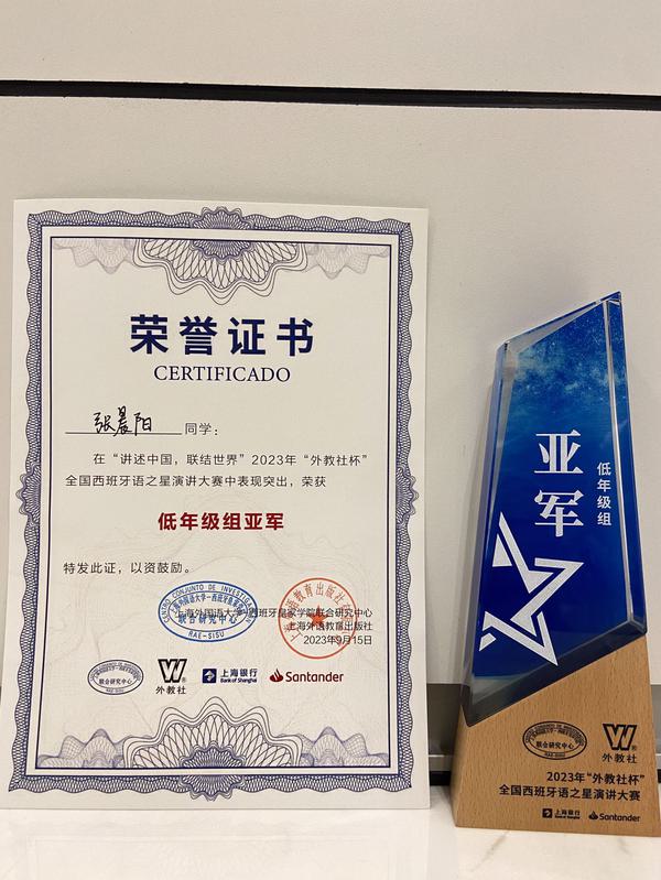 在西班牙语专业教师王磊的精心指导下,张晨阳在比赛中沉着冷静,发挥出色,经过激烈角逐,最终成功斩获全国低年级组亚军。