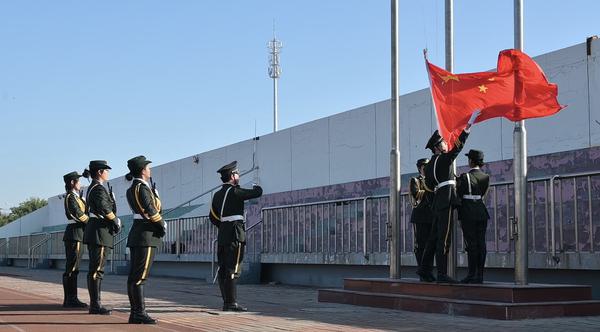 全场师生目光凝视着冉冉升起的国旗,向国旗致以崇高敬意,并齐声高唱《歌唱祖国》,向祖国母亲深情告白,将升旗仪式推向高潮。