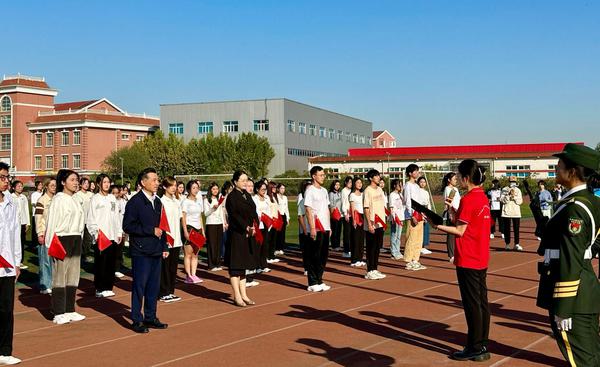 校青马班学员代表杨雅雯和霍小玥分别在国旗下发言,她们结合自身成长经历,号召同学们做走在时代前列的奋进者、开拓者、奉献者,不负时代、不负韶华,让青春在全面建设社会主义现代化国家的火热实践中绽放绚丽之花。