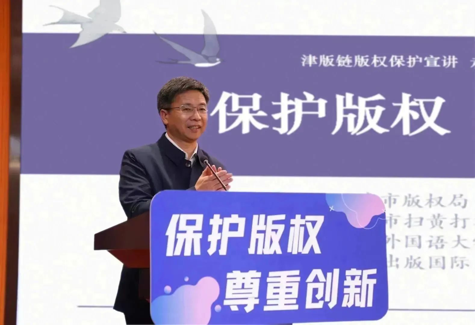胡志刚在致辞中表示,学校党委一直高度重视知识产权保护工作,并且将建立版权服务站列入2023年服务师生“十件实事”之中,希望以此次活动为契机,持续深入推进版权保护宣传教育,为推动学校高质量发展、更好地服务天津打下坚实基础。