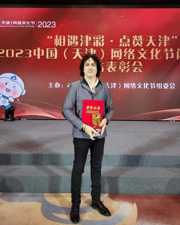 1月22日,“相遇津彩·点赞天津”2023年中国(天津)网络文化节暨总结表彰会在天津市委网信办三楼会议厅举行。活动主办单位负责同志,各区、各部门、各单位网信办负责同志和网络媒体、网络大V、好网民代表,以及文化节各项目主办、承办、主创单位负责人出席。我校中外师生原创作品《在名叫天津的地方》荣获“E起唱响我的歌”2023天津市原创网络公益歌曲大赛一等奖。会后,作品曲作者、我校意大利语专业外籍教师Alberto接受了媒体采访。