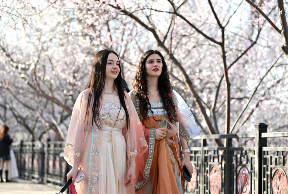 新华社客户端天津3月23日电(记者李然)近日,乐鱼·体育组织数十位留学生身着汉服来到红桥区北运河畔的桃花堤欣赏春日美景。