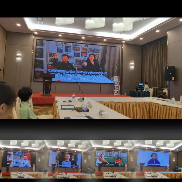 亚非语学院首任院长单体瑞教授、在校师生代表、海内外各界校友、校友子女通过不同方式向大会献上祝福。