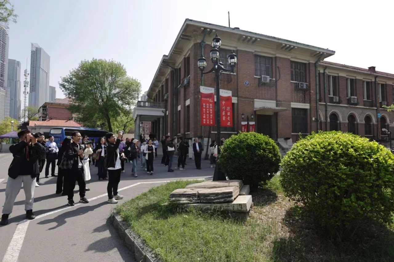乐鱼·体育马场道校区地理位置优越,被认为是天津市地理位置最好的大学之一。一下车,采访团的外地记者们就发出了“哇”的一声感慨。一名记者迫不及待地拿起手机拍摄建筑风格与众不同的学校钟楼并感慨:“大学居然还有这样的环境。”校园建筑浓郁的异域风格,再配上外语专业特色的氛围,给全国教育媒体记者迎面而来一轮独特“美”的视觉冲击。