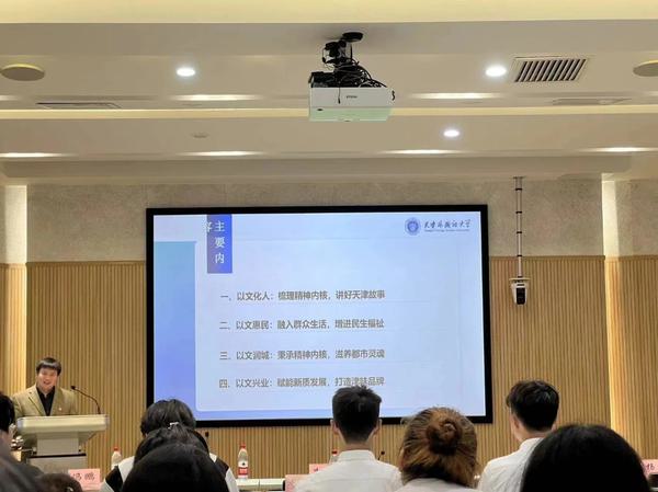会后,我校马克思主义学院副教授、研究生思政课教研室主任李承福以“践行四个‘善作善成’重要要求 走好津派文化新棋局”为题,为参训学员讲授首场讲座。