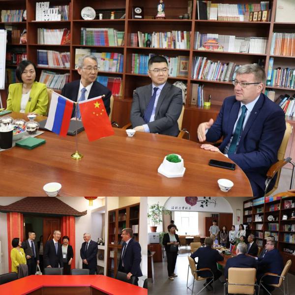 曹士海此行专程参观了伏师大孔子学院,对孔院全体教师表达了亲切的问候,听取了宁怀颖关于孔子学院发展情况及教学成果的汇报。他对孔子学院在汉语教学和文化活动组织方面所取得的成绩给予了高度评价,并表示大使馆将全力支持孔子学院的工作,为推动伏尔加格勒市国际中文教育事业发展提供必要的帮助。