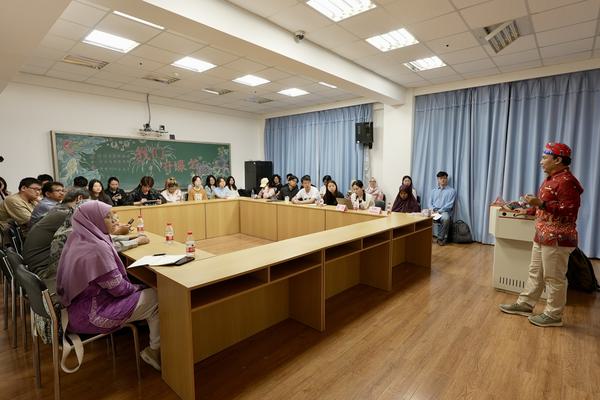 “中印尼文学交流座谈会”的嘉宾是来自布大文华学院文学系的8位教师。尤斯里(Yusri Fajar)老师既是大学讲师,也是一位印尼诗人,曾赴美国和欧洲作交流学者。座谈会上,他结合印尼华人社会的发展史,娓娓讲述了印尼华人文学的发展历程。一般认为,印尼华人社会在公元7世纪已经初具雏形。19世纪,大量中国移民迁入印尼,带去了很多中国传统的优秀作品,如《梁山伯与祝英台》《白蛇传》等。20世纪,随着新思潮和民族独立运动的发展,华人文学兴起,涌现出一批优秀的华人作家,创作了大量的诗歌、小说、戏剧等。其中许多脍炙人口的小说为真实事件改编而成,在今天看来,当时的印尼华人马来文学作品有很高的历史价值。