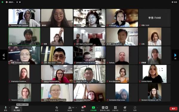 此外,为积极响应教育部推动中俄间更加紧密的教育合作部署,俄语专业积极探寻国际交流合作新方法、新实践,实行线上、线下双语教育合作并进。近五年来,累计接收数百名俄罗斯高校师生到校参观学习,率先利用远程教育技术开展汉、俄语教学,举办留学生短期线上项目。受教育部中外语言交流合作中心委托,俄语系积极承接“小鹰”中俄青少年语言文化交流中心合作业务,连续5年承办语合中心“汉语桥”线上团组交流项目、国际中文教师奖学金线上项目,万余人次俄罗斯青少年踊跃参与,为中俄青少年加强交流互鉴、增进相互理解、发展长久友谊提供了良好契机。