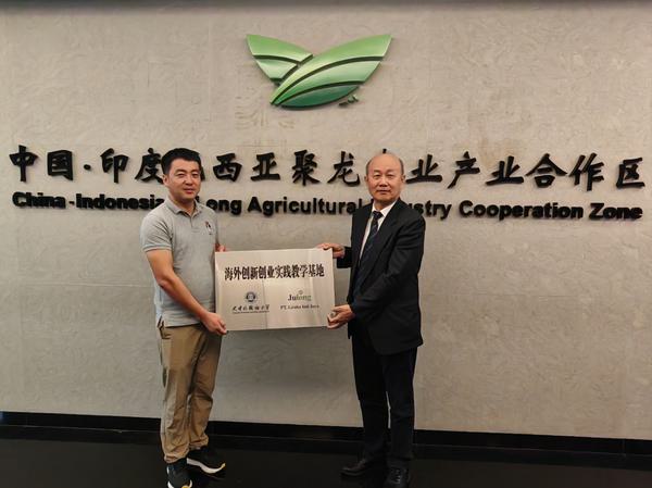 在印度尼西亚,程国毅与聚龙集团副总裁侯光珍、人力资源总经理壮,以及相关部门负责人展开会谈。就强化为企业开展国际中文人才联合培养、实施复合型“中文+职业技术”人才培养模式、建设高质量长期合作项目、多方合作横向科研项目、建设海外实践实习基地、接受我校印尼语毕业生就业等方面进行了深入交流,并达成一致意见。双方签署了合作框架协议,程国毅为聚龙印尼公司海外创新创业实践教学基地授牌。