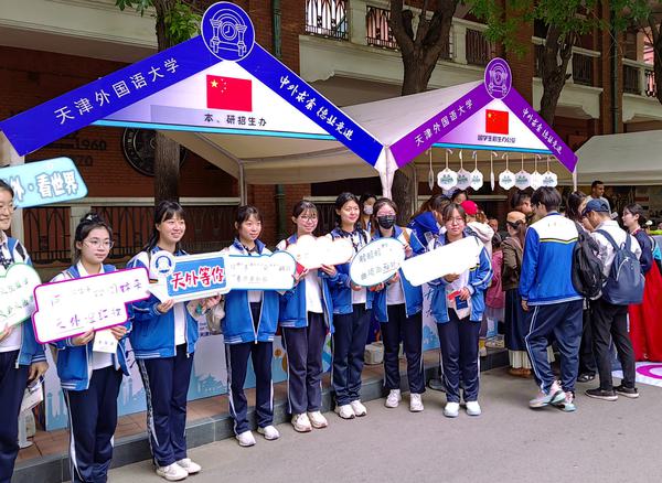漫步在各个展位间,哥伦比亚的同学们热情地邀请游客们跳起昆比亚,尽显南美的热情奔放和舒畅欢愉;韩国同学用五颜六色的颜料打造的面部彩绘绚丽精致、让人迷乱双眼;日本同学和游客们一起折叠千纸鹤,寄予着浓浓的心想事成的美好愿望;贝宁的美食大大地满足了人们的味蕾,引得大家赞不绝口;哈萨克斯坦的传统服装试穿体验让人们仿佛置身广袤的大草原。琳琅满目的各国手工艺品、特色小吃,天津非遗文化体验区等彰显着不同的民族风情和文化内涵,吸引了游客们倾听、体验。现场特设的天外本科生、研究生招生宣传展位和留学生招生宣传展位前人头攒动,不少市民前来咨询交流。