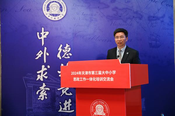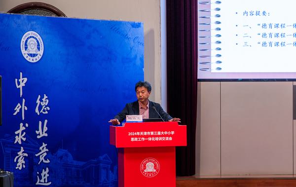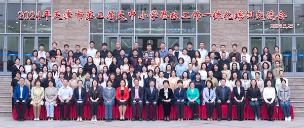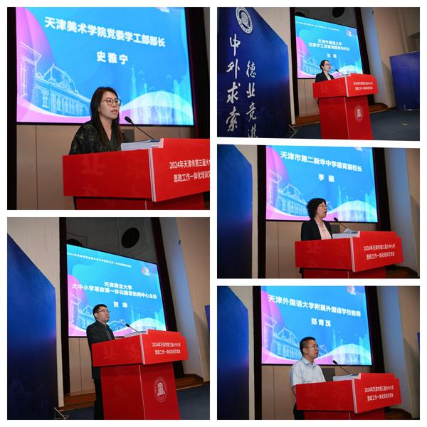 市教育两委有关负责同志现场致辞,他指出,站在新的历史起点上,我们必须坚持以习近平新时代中国特色社会主义思想为指引,持续深入推进大中小学思政工作一体化建设,做到一体融合,同频共振。未来要搭建横跨各个学段、贯穿学生成长全程的思想政治教育体系,举办覆盖全市大中小学的育人活动;同时依托各类平台和研究中心,有效突破大中小学思政教育之间的壁垒,在相互融合中加强深层次联动,进一步提升思政教育的针对性和吸引力。希望参会的专家学者、各学段思政课和德育教师,紧密结合新时代背景下的教育需求,围绕大中小学思想政治教育工作一体化主题深度交流、拓宽视野,提炼更多先进的教学理念和方法,共同助力天津乃至全国大中小学思政工作一体化建设迈向新的台阶。
