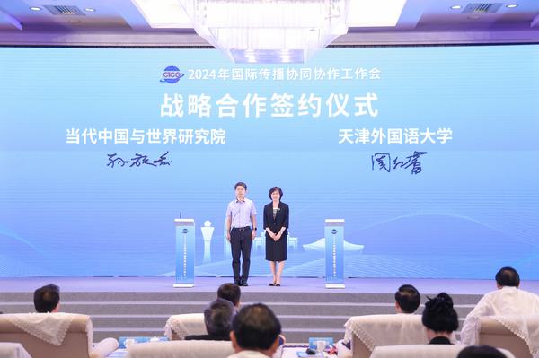 聚合各方力量共同服务国际传播工作大局,全面提升国际传播协同协作工作效能,5月31日,由中国外文局、中共福建省委宣传部主办,当代中国与世界研究院、中共厦门市委宣传部承办的2024年国际传播协同协作工作会在厦门举行。中国外文局局长杜占元,中共福建省委常委、宣传部部长张彦,国务院新闻办公室原副主任、中国公共关系协会会长郭卫民,中国外文局副局长于运全,中国外文局副总编辑陈实,中宣部国际传播局副局长兰斌,中共厦门市委常委、宣传部部长吴子东等出席会议。于运全主持开幕式。应中国外文局邀请,我校党委书记周红蕾带队参会,并与中国外文局当代中国与世界研究院副院长孙敬鑫共同签署“全球气候治理研究院”共建协议。