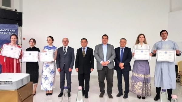 近日,由中国驻匈牙利大使馆主办、佩奇大学孔子学院承办的第23届“汉语桥”世界大学生中文比赛匈牙利赛区分赛在佩奇市举办。中国驻匈牙利大使龚韬出席开幕式并致辞,使馆教育参赞韩东升、匈牙利五所孔子学院中匈方院长、匈中双语学校代表等出席活动。