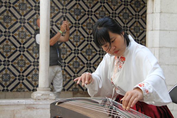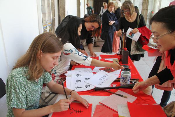 5月18日,里斯本大学孔子学院应邀在葡萄牙国家瓷砖博物馆举办系列中国文化活动,成为2024国际博物馆日庆祝活动的新亮点。活动当天,孔子学院的教师们精心准备了书法、茶艺、古筝演奏、书写中文名和中国传统服饰等丰富多彩的项目,吸引了大量参观者驻足欣赏和体验。