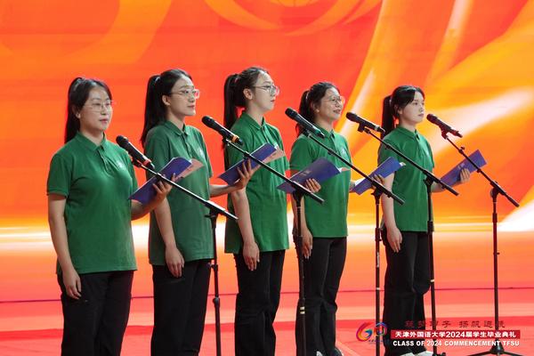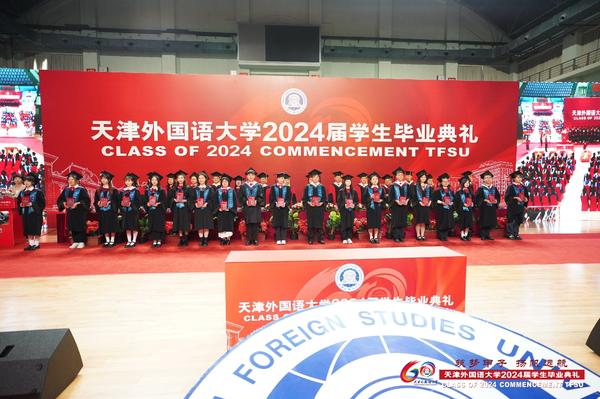 从五湖四海来,到天南地北去。体育馆里31种外文书写的毕业祝福标语环绕四周,祝福毕业生逐梦起航。典礼开始前,在《落在生命里的光》等青春旋律中,“快闪”演出拉开毕业典礼序幕,瞬间点燃现场氛围。各学院精心制作的视频《我们都是追梦人》、毕业视频《青春·自定义》唤起毕业生们对大学时光的美好回忆,鼓励他们激扬青春浪潮,奋进海阔天空。毕业典礼在嘹亮的国歌声中正式开始。