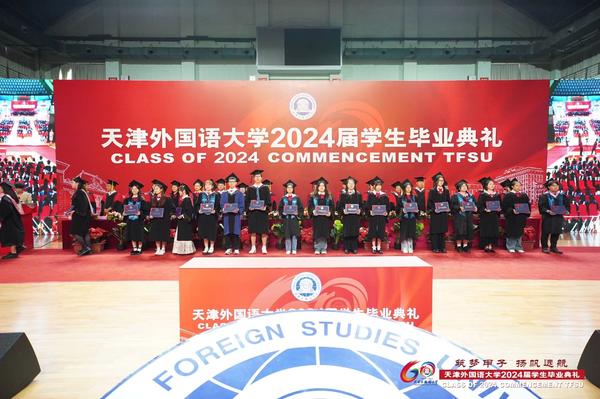 国际商学院杨雅雯代表全体在校生发言,英语学院研究生宫宇航、国际教育学院本科生彭君仪、国际教育学院留学生玛丽娜代表2024届全体毕业生发言,感情真挚,信心满怀。教师代表国际传媒学院俞春玲老师的深情嘱托感动人心,“离别开出花”的歌声感动全场毕业生。我校2009届英语专业校友、中央广播电视总台英语环球节目中心专题节目部副主任、纪录片导演、全国抗击新冠肺炎疫情先进个人葛云飞勉励毕业生追寻理想,不懈奋斗。支教团志愿者以诗朗诵《美丽中国》为母校和国家献上最真挚的祝福。