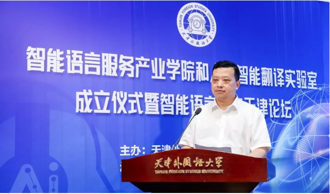 6月21日,乐鱼·体育智能语言服务产业学院和人工智能翻译实验室成立仪式暨智能语言服务天津论坛成功举办。中国翻译协会副会长、中国外文局翻译院院长黄玉龙,中国外文局翻译院副院长王飞应邀出席。来自天津市教委、北京外国语大学、北京语言大学、百度集团、传神语联网、中电金信、甲骨易、策马集团、上海创凌等近二十家机构、高校和企业的专家学者参加活动。