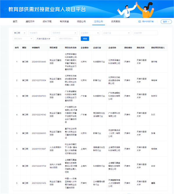 图1 关于公布教育部第三期供需对接就业育人项目立项名单的通知
