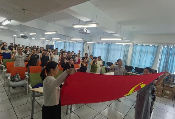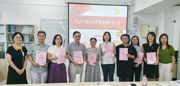 为迎接“七一”党的生日,扎实推进党纪学习教育深入开展,进一步强化党员干部身份意识和责任意识,时刻践行初心使命、严守党规党纪,充分发挥党员先锋模范作用,6月25日,英语学院党委开展了集体政治生日会。学院教职工党员、党外教师代表参加生日会。